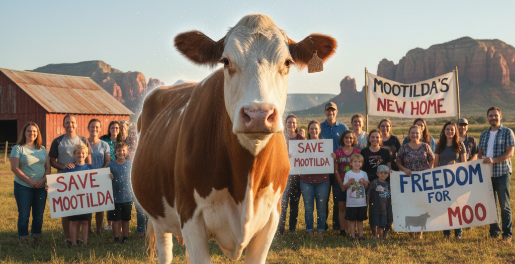 El escape de Mootilda en agosto por las calles de San Tan Valley -capturado en video por testigos- mostró a la vaca esquivando vehículos bajo el intenso calor del desierto antes de ser recapturada por las autoridades. Su destino parecía sellado hasta que Aimee Takaha, directora del santuario, vio las imágenes y emprendió una carrera contra el tiempo.